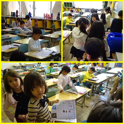 1年生の「ひらがな」の練習です。丁寧に書いて、先生に見てもらいます。上手に書けるようになってきたね。