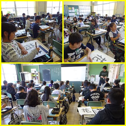 4年生の書写「花」の練習です。曲がりの線に気をつけて、漢字の上下のバランスにも気を配って練習します。