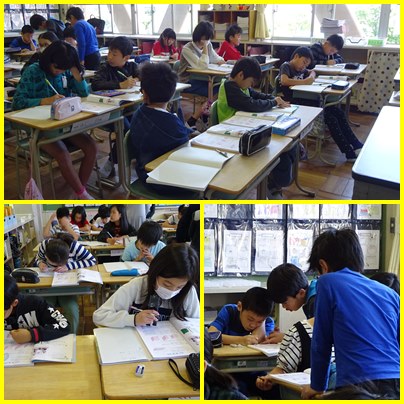 5年生の算数「体積」の学習です。習ったことを復習します。友達と考えたり、確認したりして学んでいます。