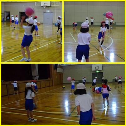3年生の体育「ボール運動」の学習です。ボールを投げたり、受け取ったり・・・・ボールを使って楽しく運動をしています。