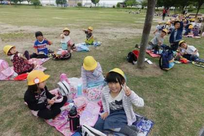 1年生は、2年生と一緒にパークアリーナへ行きました。芝生広場では、お兄さん・お姉さんと一緒に遊んだり、お弁当を食べたりしました。とても楽しい時間を過ごすことができました。