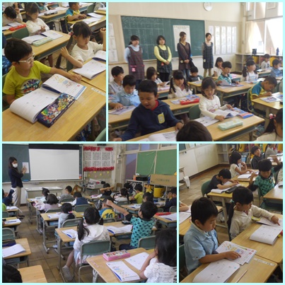 今日は「幼保小連絡会」として、幼稚園や保育園の先生方に1年生の授業の様子を公開しています。