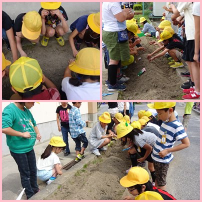 3年生の理科の学習です。ひまわりとピーマンの種をまきました。植物の成長を学んでいきます。協力し合って種を観察して、まきました。