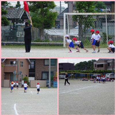 1年生も体力テストです。ソフトバレーボール投げと50メートル走を測定しています。全力で取り組んでいます。