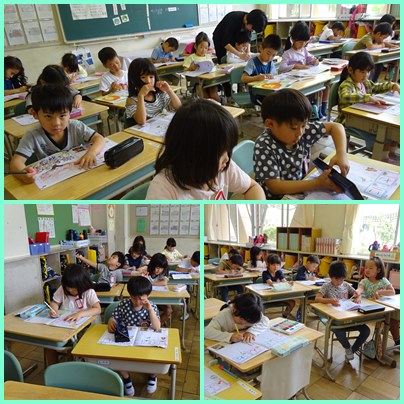 1年生のひらがなの練習です。ますのどの部分から書き始めるのかを確認してから、丁寧に書いていきます。
