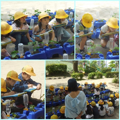 先日植木鉢に植えたプチトマトの観察をしています。