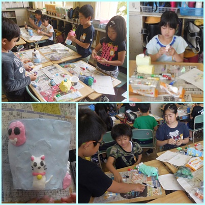 日常生活で使うことを考えながら、空き容器に粘土をつけて小もの入れを制作しています。