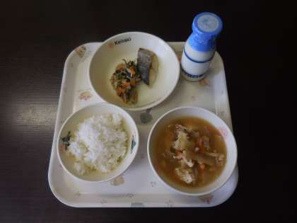 肉豆腐、さわらの塩こうじ焼き、牛乳、