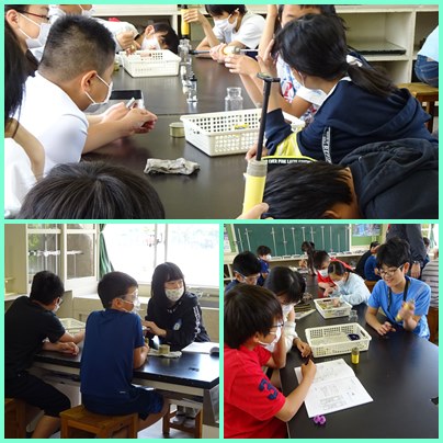 6年生の理科「物の燃え方と空気」の学習です。気体の濃度をはかるための「気体検知管」の使い方を学んでいます。グループごとに確認です。