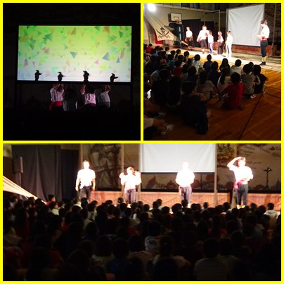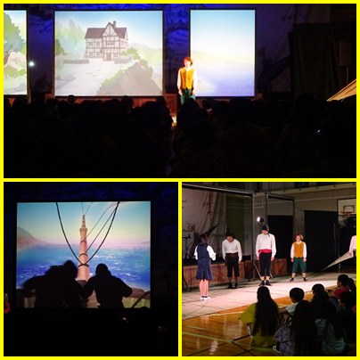 午後は、高学年の部の観劇会です。劇団かかし座のみなさんが影絵「宝島」を演じてくれました。影絵の部分と、演技の部分があり、子どもたちは「宝島」の世界にたっぷり引き込まれました。