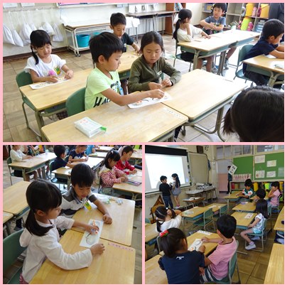 1年生の算数「いくつといくつ」の学習です。7個のみかんを二つに分けます。数の合成・分解について学んでいきます。