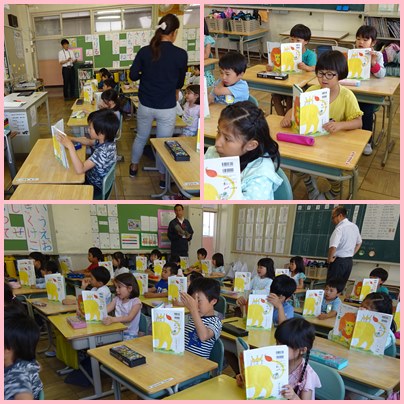 1年生の国語「はなのみち」の学習です。動物たちの春の様子を挿絵から想像して話しあいます。
