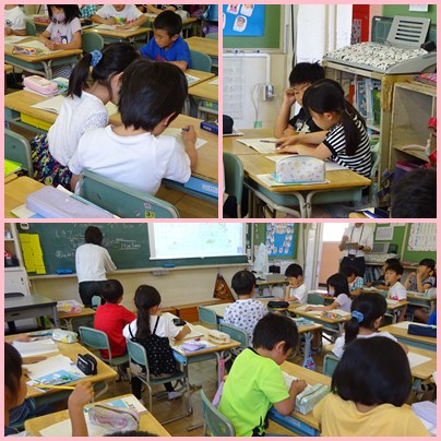 2年生の算数「長さ」の学習です。絵を見て、道の長さに注目し、長さのたしざんやひきざんを使って、問題を解いていきます。