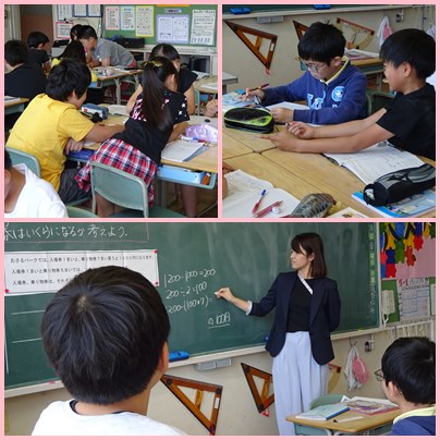 5年生の算数「考えを広めよう 深めよう」の学習です。複雑な数量関係の問題をグループで話し合って解いていきます。関係をはっきりさせると答えを導きだすことができます。