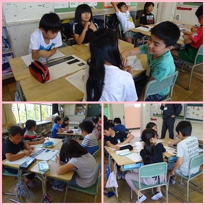 4年生の算数「何倍でしょう」の学習です。順々に考えて解く場合と、まとめて何倍になるかを考えて解く場合を比べて、学んでいきます。