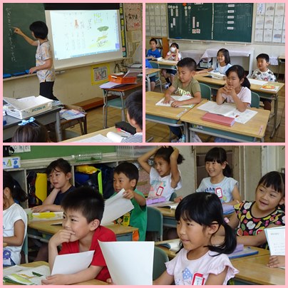 1年生の国語「ねことねっこ」の学習です。促音や半濁音のある言葉を、正しく書くことを学んでいます。間違いを直し、正しい文にします。