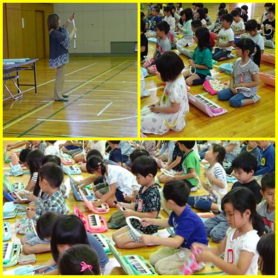 1年生の鍵盤ハーモニカ講習会です。外部の方を講師にお招きして、鍵盤ハーモニカの使い方、演奏の仕方などを教えていただきました。