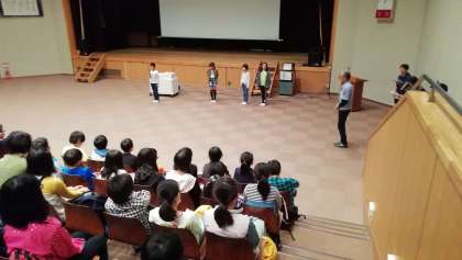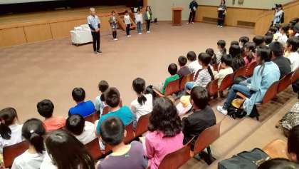 施設の所長さんや担任の先生のお話を聞いた後、みんなでお世話になりますの挨拶をしました。