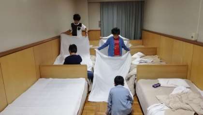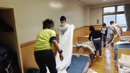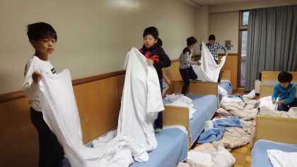 眠い目をこすりながら、着替えて寝具の片付けです。