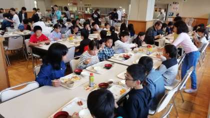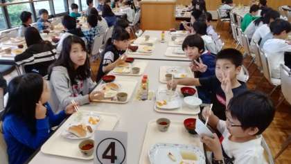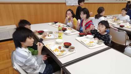サラダ、ソーセージ、ポテト、パン、味噌汁、ご飯・・・思い思いの量を美味しくいただきました。