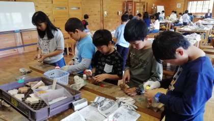 ヤスリをかけたり新聞で研いたりしたら、目の部品を取り付けます。