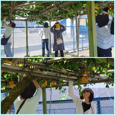 しかし、思ったよりはたくさん実がついてくれたので、午後は教職員も総出で作業しました。