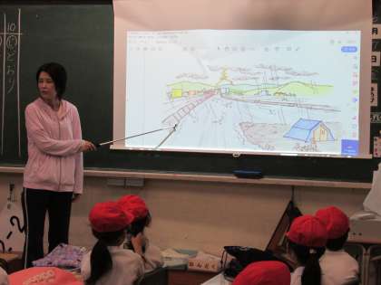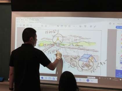 2年生のKYT(危険予知トレーニング)です。今日は、2年生も、自然災害時の危険予知について考えました。豪雨、雷など条件下で、川の中州でキャンプをしている家族に迫る危険について話し合いました。