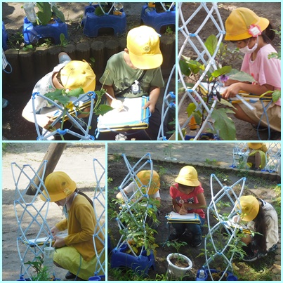 今日は、育てている野菜の観察です。