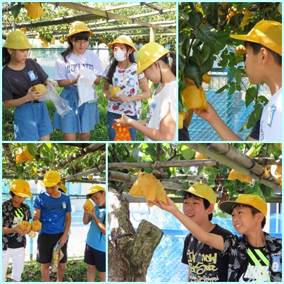 6年生は6年間共に成長してきた梨を楽しそうに収穫していました。