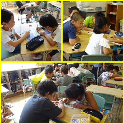 3年生です。2学期の係活動の掲示物を作っています。活動の目標や内容、分担などをわかりやすく書いています。責任感を持って活動しましょう。
