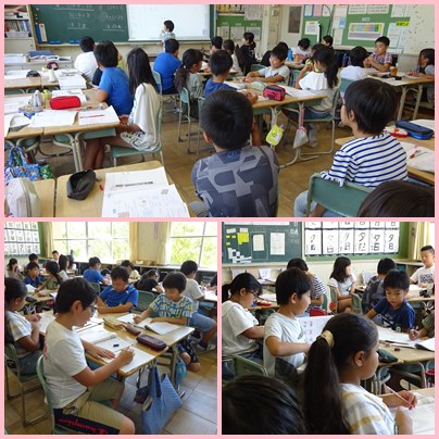 4年生の算数「□を使った式」の学習です。□を使った式の中の□を求める計算を考えます。割り算だったら、かけ算。かけ算だったら、割り算で求められることがあります。式の意味を考えて答えを導きだします。