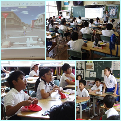 自転車に乗っている子どもの視点で描かれたイラストを見ながら、どんな危険が予測されて、どうすれば危険を軽減できるのかを話し合いました。