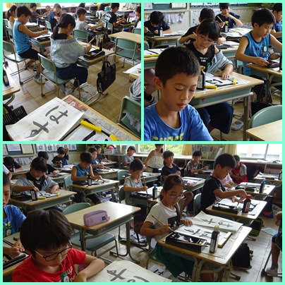 4年生の書写「はす」の学習です。まがり、結びに気をつけて練習します。