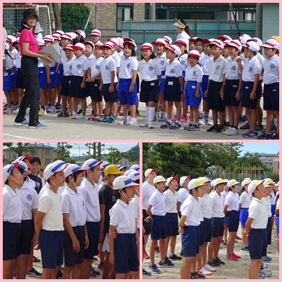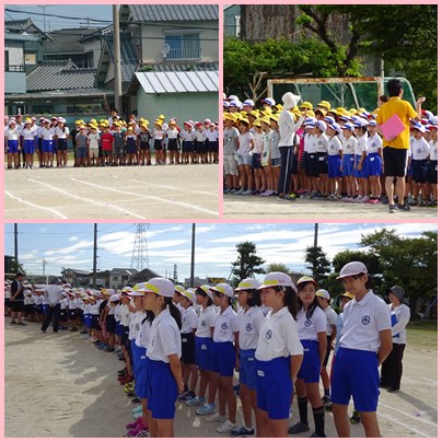 朝の運動会全体練習は、運動会の歌「ゴーゴーゴー」です。色ごとに練習してきた成果を発揮します。6年生を中心に大きな声で頑張っています!