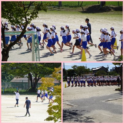 6年生の体育は、運動会の練習です。短距離走の練習です。入場から、走るコース、待つ位置などの確認です。
