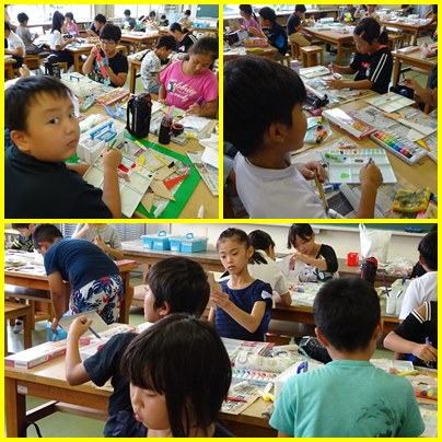 4年生の図工「ギコギコ クリエイター」の学習です。自分の設計図に基づいて作っています。仕上げの色塗りも丁寧に行います。