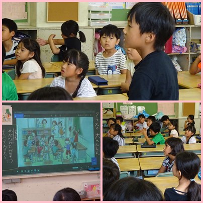 2年生の道徳「クラスのだいへんしん」の学習です。一人一人が好き勝手に振る舞うクラスと、協力し合うクラスを対照的に描いた場面の絵を通して、自分勝手な行動をしたり自分の好き嫌いにとらわれたりせず、友達と接することで学級や学校を楽しくしようとする態度を育てます。