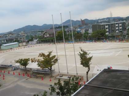 おはようございます。本日の運動会は実施です!プログラムは、昨日変更の案内をさせていただいたもので行います。天候によっては変更の可能性もあります。児童には、朝から弁当としきものを持たせてください。