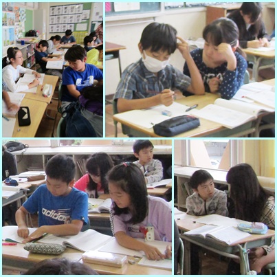 今日は、これまで学習したことをもとに、工夫して面積を求める学習をしています。