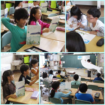 子どもたちの行動や言葉は子どもたちが、くじらぐものところは先生が読みます。