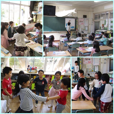 お話に登場する子どもたちのように、大きなくじらぐもに見下ろされながらみんなで手をつないで「てんまでのぼれ、いち、に、さん!」