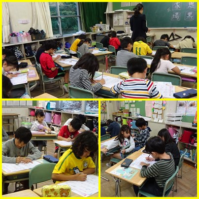 2年生の書写です。漢字を書きます。手本をよく見て、丁寧に書き順を意識して書いていきます。