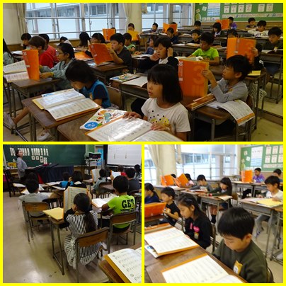 3年生の音楽です。階名で歌い、リコーダーで演奏します。いろんな曲を演奏できるようになってきましたね。