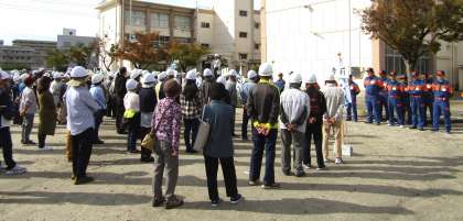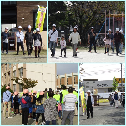 校区各地区から学校へ避難してくるところから訓練開始です。