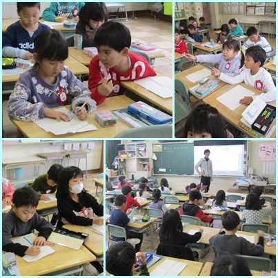 色板や棒を使ったり点をつないだりしていろいろな形をつくり、図形を構成する物について考える学習です。