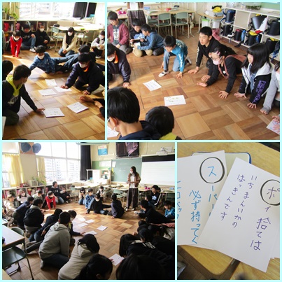 みんなでカルタをつくって、カルタ取りを楽しみながらエコな暮らしについて学んでいます。