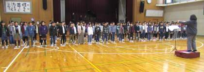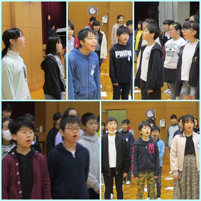 1〜5年生がたてわり活動を行っている間、6年生は体育館で合唱の練習を行いました。