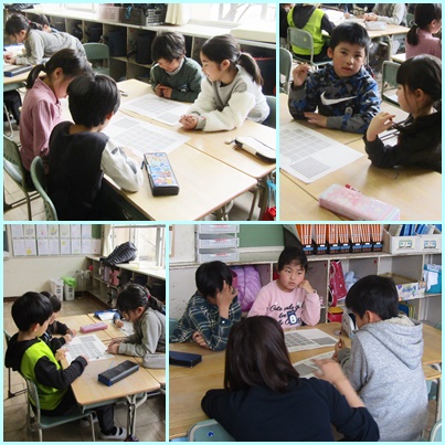 今日は、たくさん並んだどんぐりをどのように数えたらいいかを考えています。