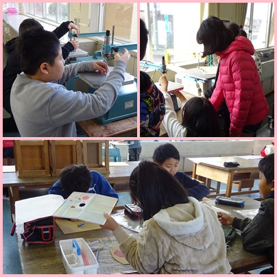 5年生の図工「伝言板」の学習です。板を好きな形に切り、伝言板を作ります。電ノコで切ったり、絵の具で着色したりして作品を作ります。