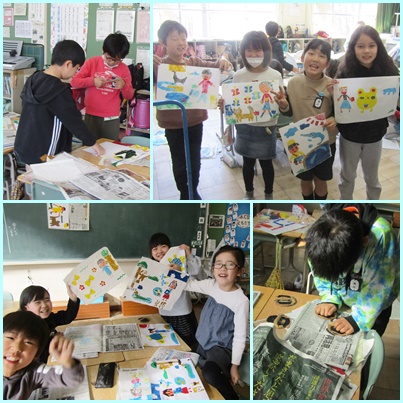 出来上がった作品を、みんなうれしそうに見せてくれます。